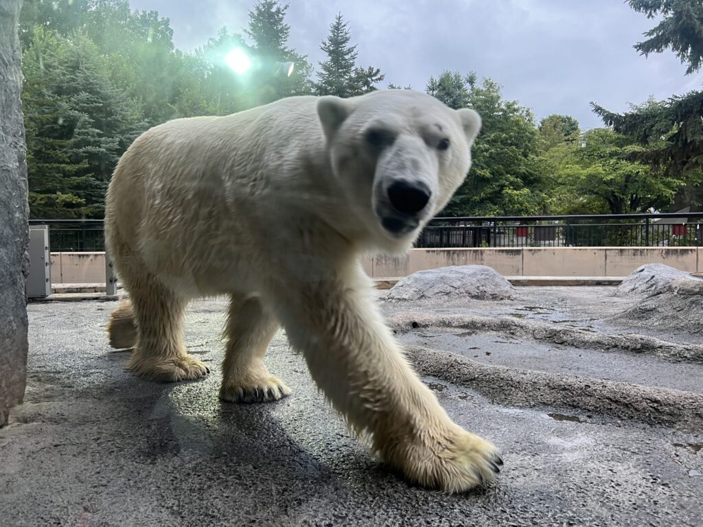 ホッキョクグマは最初寝てたけど暗くなり始めたら活発に動いていていい写真が撮れました