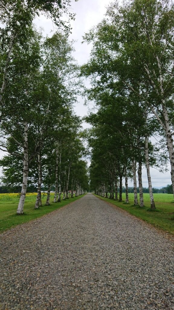 十勝牧場に行く途中に白樺並木がありました